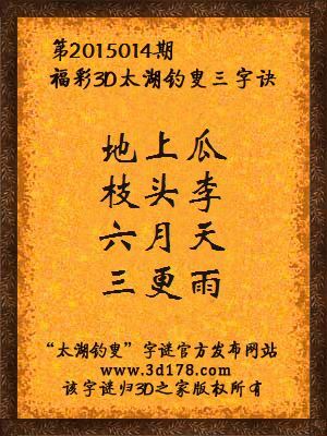 3d杰夫哈迪解太湖字谜第2015014期