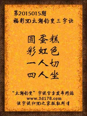 解福彩3d第2015015期太湖字谜: