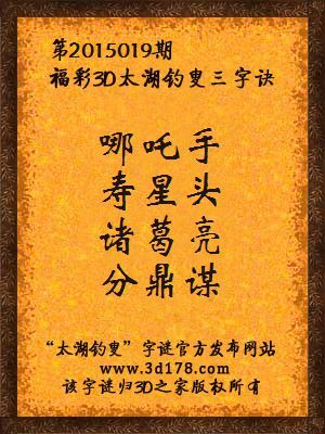 2015年福彩3d第019湖钓叟字谜:哪吒手,寿星头,诸葛亮,分鼎谋