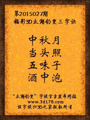 解福彩3d第2015027期太湖字谜: