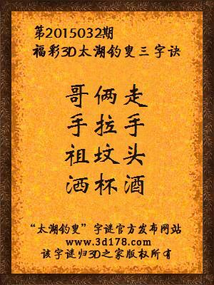 3D第2015032期太湖字谜:哥俩走,手拉手,祖坟头,洒杯酒