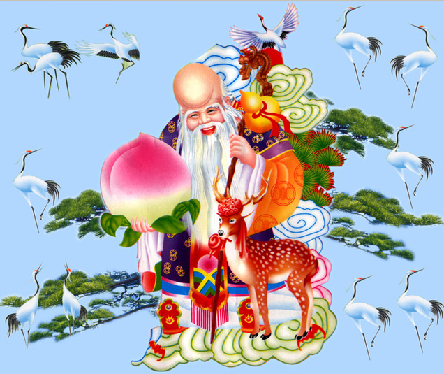 本期太湖字谜中寿桃可想到南极仙翁。又称南极真君、长生大帝,玉清真王,是古代汉族神话传说中的老寿星,为元始天尊座下大弟子。因为他主寿,所以又叫“寿星”或“老人星”。汉族民间认为供奉这位仙神,可以使人健康长寿,这位仙神其实是道教追求长生的一种信仰。寿星形象为一白发老翁,鹤发童颜,面目慈祥,所拄弯曲拐杖,必高过头顶。常被汉族民间用作年画图案,是吉祥长寿的象征。