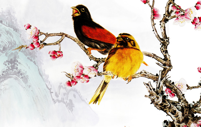 在枝头:两只黄鹂鸟停在枝头上看树下的人喝酒解愁,枝字八划,解:8