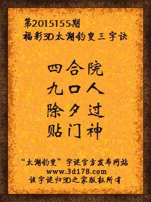 3D第2015155期太湖字谜:四合院,九口人,除夕过,贴门神