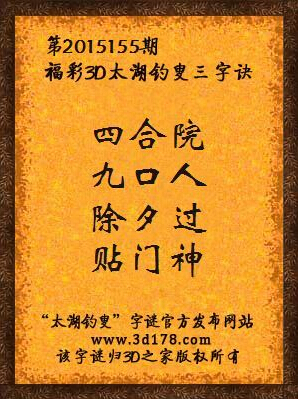 2015年福彩3d第155期太湖钓叟字谜: