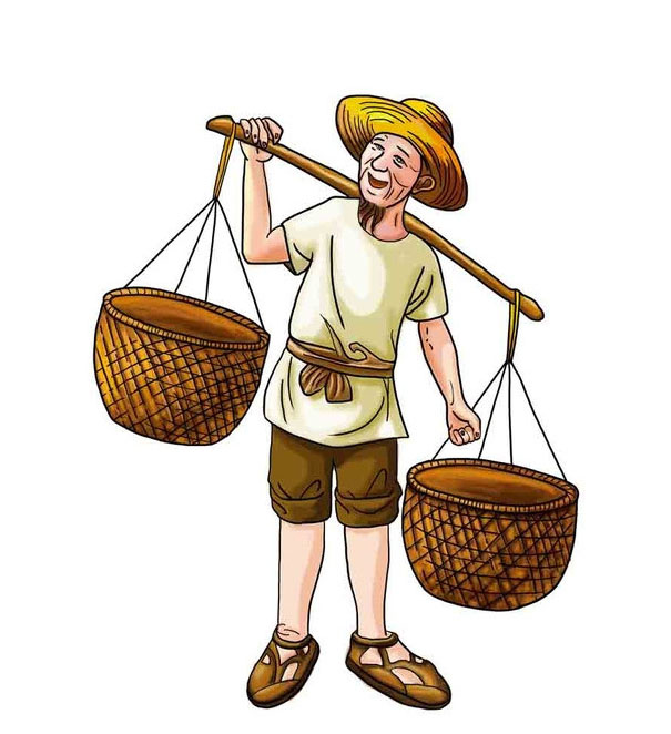 挂弯钩:在扁担的两端挂上两个弯钩,用来挂物品用;弯钩形似6;解:6