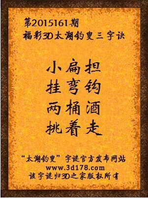 2015年福彩3d第161期太湖钓叟字谜: