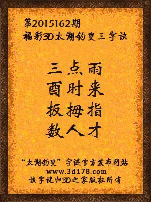 3D第2015162期太湖字谜:三点雨,酉时来,扳拇指,数人才