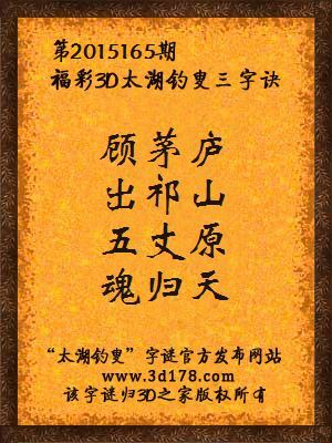 解福彩3d第2015165期太湖字谜: