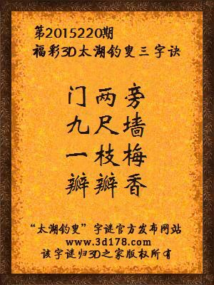 福彩3D第2015220期太湖字谜:门两旁,九尺墙,一枝梅,瓣瓣香