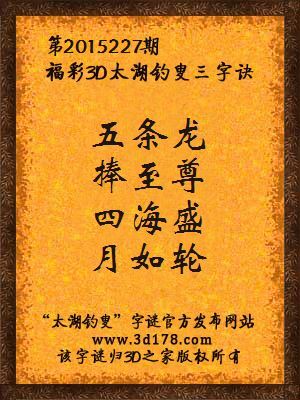 福彩3D第2015227期太湖字谜:五条龙,捧至尊,四海盛,月如轮