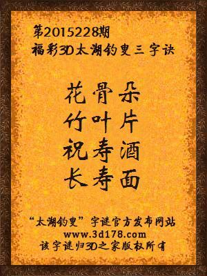 福彩3D第2015228期太湖字谜:花骨朵,竹叶片,祝寿酒,长寿面