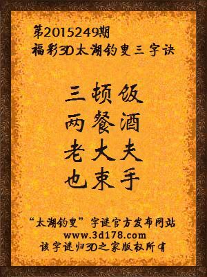 福彩3D第2015249期太湖字谜:三顿饭,两餐酒,老大夫,也束手