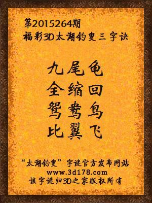 福彩3D第2015264期太湖字谜