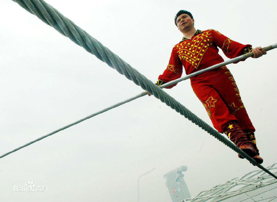 本期太湖字谜说的是新疆维吾尔族的古老传统——走钢丝表演。达瓦孜 《达瓦孜》一词其含义是高空走大绳,也就是高空走钢丝。维吾尔语中DARWAZ,DAR是高的意思,如:DAR GA ISSIX意为绞刑,WAZ是指从事某种技术的人。达瓦孜是维吾尔族传统的高空表演之一,距今已有两千多年的历史。它以其悠久的历史,独特的风格,精湛的技艺和惊险的表演容:杂技.歌舞.体育为一炉。令人赞叹不已.历来深受人民群众的喜爱,是新疆维吾尔族人民勤劳和智慧的结晶,经久不衰成为我国灿烂民族文化宝库中的一颗璀璨的明珠。改革开放后,古老的传统维吾尔族民间杂技达瓦孜发展甚快,赢得了前所未有的荣誉。