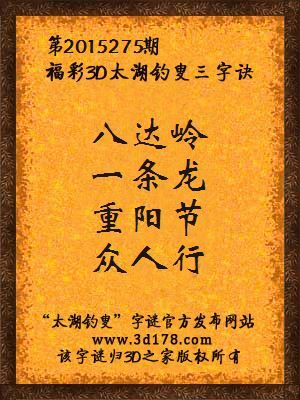 3D第2015275期太湖字谜