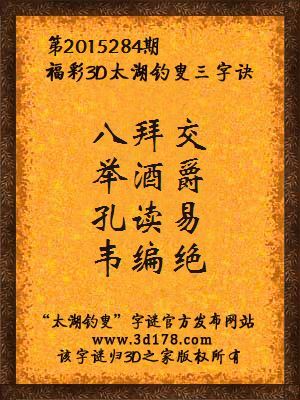 福彩3D第2015284期太湖字谜:八拜交,举酒爵,孔读易,韦编绝