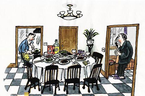本期字谜讲的是一个很暖心的故事,儿子常年出门在外打拼,难得回来一趟,夫妻两个每天都是盼着儿子回家。临近过年了,儿子终于捎信说要回来,夫妻俩早早的就备好饭菜在家里等着,临近半夜,儿子还没有到,饭菜热了一遍又一遍,夫妻两个谁也不肯去睡觉。夜深了,外面竟然飘起了雪花,父亲眼睛一直盯着窗外,感觉儿子快到了,果然,远处看到一个人的熟悉的身影,急忙转身对正在热菜的妻子大喊:“儿子回来了,回来了,孩子他妈,快点烫酒,给儿子暖暖……”