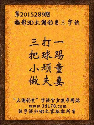 福彩3D第2015289期太湖字谜:三打一,把球踢,小顽童,做夫妻