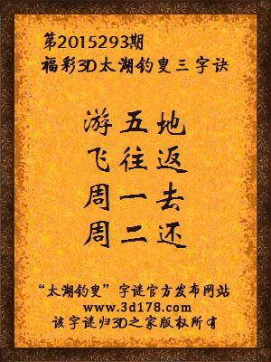 福彩3D第2015293期太湖字谜:游五地,飞往返,周一去,周二还