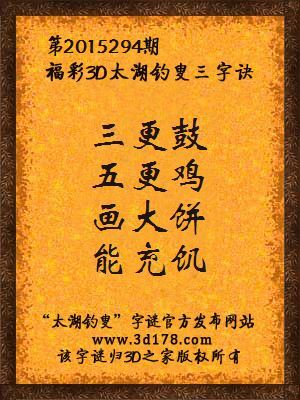 解3d太湖字谜第2015294期火车司机:五更鸡