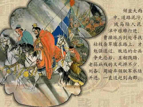 华容道:曹操在夺取荆州后,率领二十多万水陆大军顺江东下。计划一举消灭刘备和孙权,实现统一全国的宏愿,结果被孙刘联军火烧赤壁,仓惶溃逃,败走华容道。华容道解1、6;