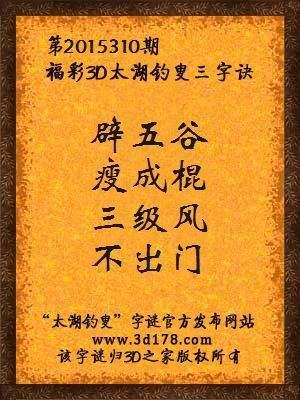 福彩3D第2015310期太湖字谜:辟五谷,瘦成棍,三级风,不出门