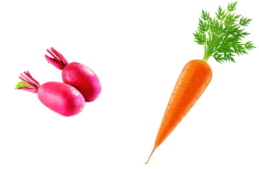 红萝卜:大红萝卜不是胡萝卜它有着红色的表皮,萝卜长得圆圆的像个球,解0;