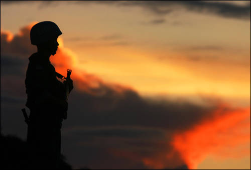 把枪鸣:同时,他们还会鸣枪,来通知其他的士兵;枪的形状很像数字7,理解为7;解:7