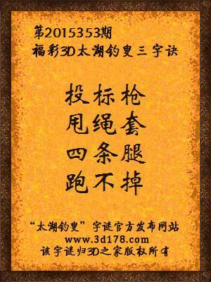 福彩3D第2015352期太湖字谜:投标枪,甩绳套,四条腿,跑不掉