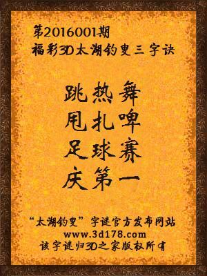 福彩3D第2016001期太湖字谜:跳热舞,甩扎啤,足球赛,庆第一