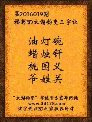 福彩3D第2016019期太湖字谜:油灯碗,蜡烛钎,桃园义,爷姓关