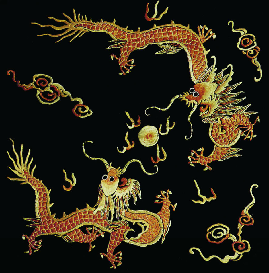 两火龙,一火珠:龙本是不常见的神异动物,但是这次却有两条龙同时出现,明码解2。而他们中间有一颗火珠,可能这就是“双龙戏珠”的由来,明码解1,珠子是圆圆的,解0;