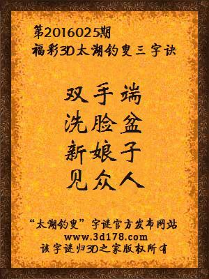 福彩3D第2016025期太湖字谜:双手端,洗脸盆,新娘子,见众人
