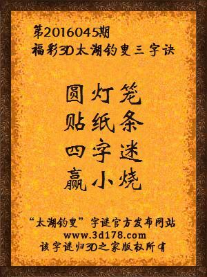福彩3D第2016045期太湖字谜:圆灯笼,贴纸条,四字迷,赢小烧