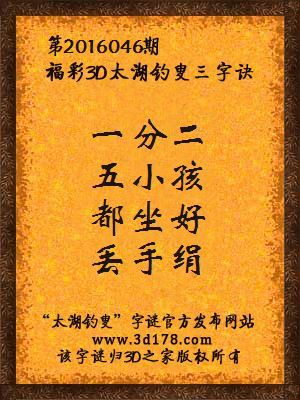 福彩3D第2016046期太湖字谜:一分二,五小孩,都坐好,丢手绢