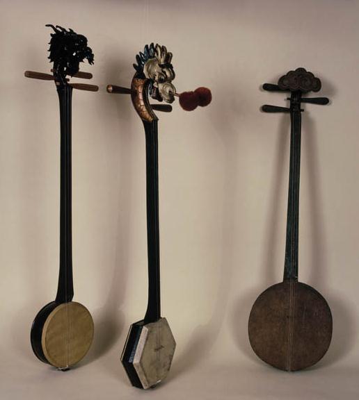 弹三弦:三弦是少数名族的一种乐器,柄很长,音箱方形,两面蒙皮,弦三根,此处解1 3,解二码1 3;