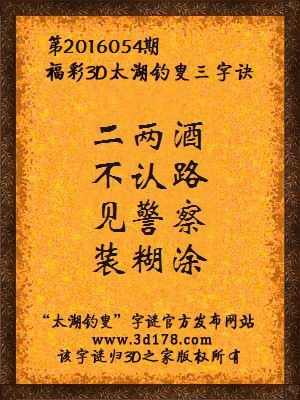 3d太湖字谜第2016054期谜面:二两酒,不认路,见警察,装糊涂