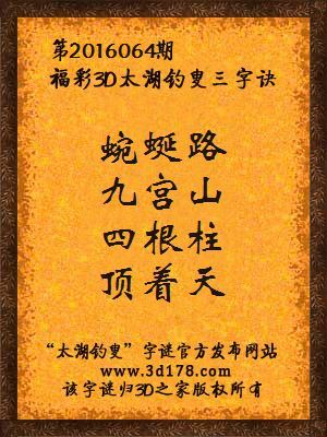 今日3d太湖字谜总汇,3d之家为您详细解答2016064期3d太湖字谜,并汇总多位专家精解太湖字谜供参考。