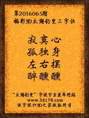 福彩3D第2016065期太湖字谜:寂寞心,孤独身,左右摆,醉醺醺