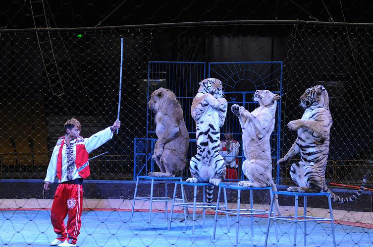 蛇吐信,驴打滚;踩大球,站得稳。蛇吐信,闻气味;驴打滚,解疲劳;踩大球,站得稳,的是熊。这一个就是马戏团的表演,马戏团里的动物能够做很多的动作,表演给大家看。马戏团是进行马戏表演的团体组织。它起源于古罗马的角斗士斗兽场,非常血腥残酷。当时有“只有面包和马戏”才能使罗马人快乐的说法。