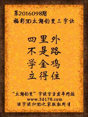 解3d第2016098期太湖字谜: