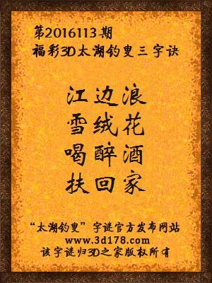 字谜专家杰夫哈迪解3d第2016113期太湖字谜