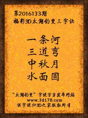 今日3d太湖字谜总汇,3d之家为您详细解答2016133期3d太湖字谜,并汇总多位专家精解太湖字谜供参考。