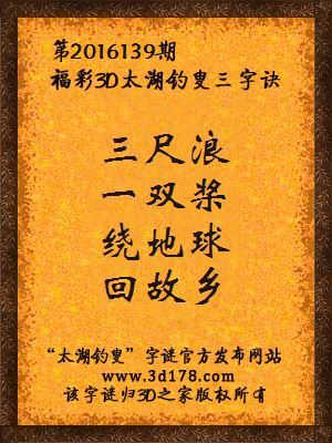 福彩第2016139期3d太湖字谜:三尺浪,一双桨,绕地球,回故乡