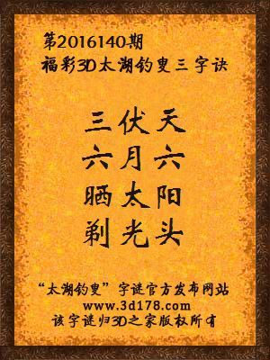 福彩第2016140期3d太湖字谜:三伏天,六月六,晒太阳,剃光头