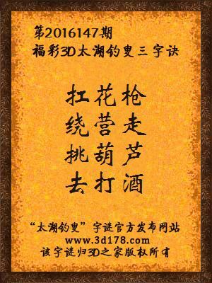 今日3d太湖字谜总汇,3d之家为您详细解答2016147期3d太湖字谜,并汇总多位专家精解太湖字谜供参考。