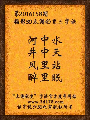 今日3d太湖字谜总汇,3d之家为您详细解答2016158期3d太湖字谜,并汇总多位专家精解太湖字谜供参考。