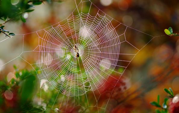 垂丝线---蜘蛛吐出白色的丝线,结成圆形,网状,目的是扑食,解14;