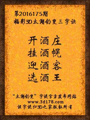 第2016175期丽人达人解3d字谜之挂酒幌,迎酒客